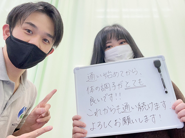 通いはじめて体が楽になりました! いつもお世話になっています。 ありがとうございます! お住まい:金沢区 最寄り駅:金沢文庫駅